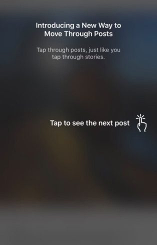 Here’s a look at how tap-to-advance in the feed worked, and the alert users got about how it works.