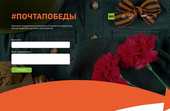 Короткая ссылка 10:00 RT Телеканал RT и Цифровое деловое пространство (ЦДП) запускают интерактивный проект, благодаря которому каждый желающий сможет поздравить ветеранов с 75-летием победы в Великой Отечественной войне. Поздравления будут показаны 24 июня на медиафасаде ЦДП в Москве.…